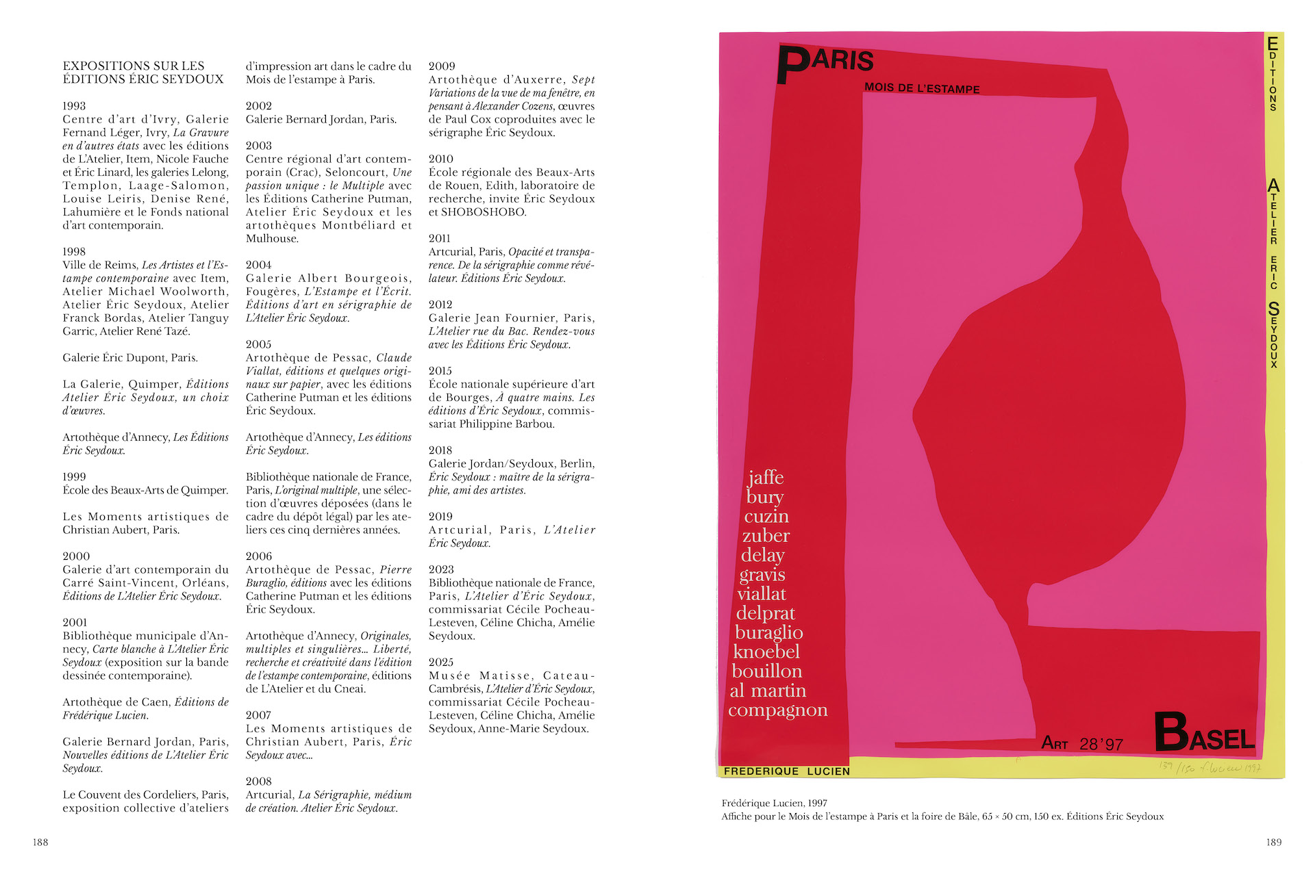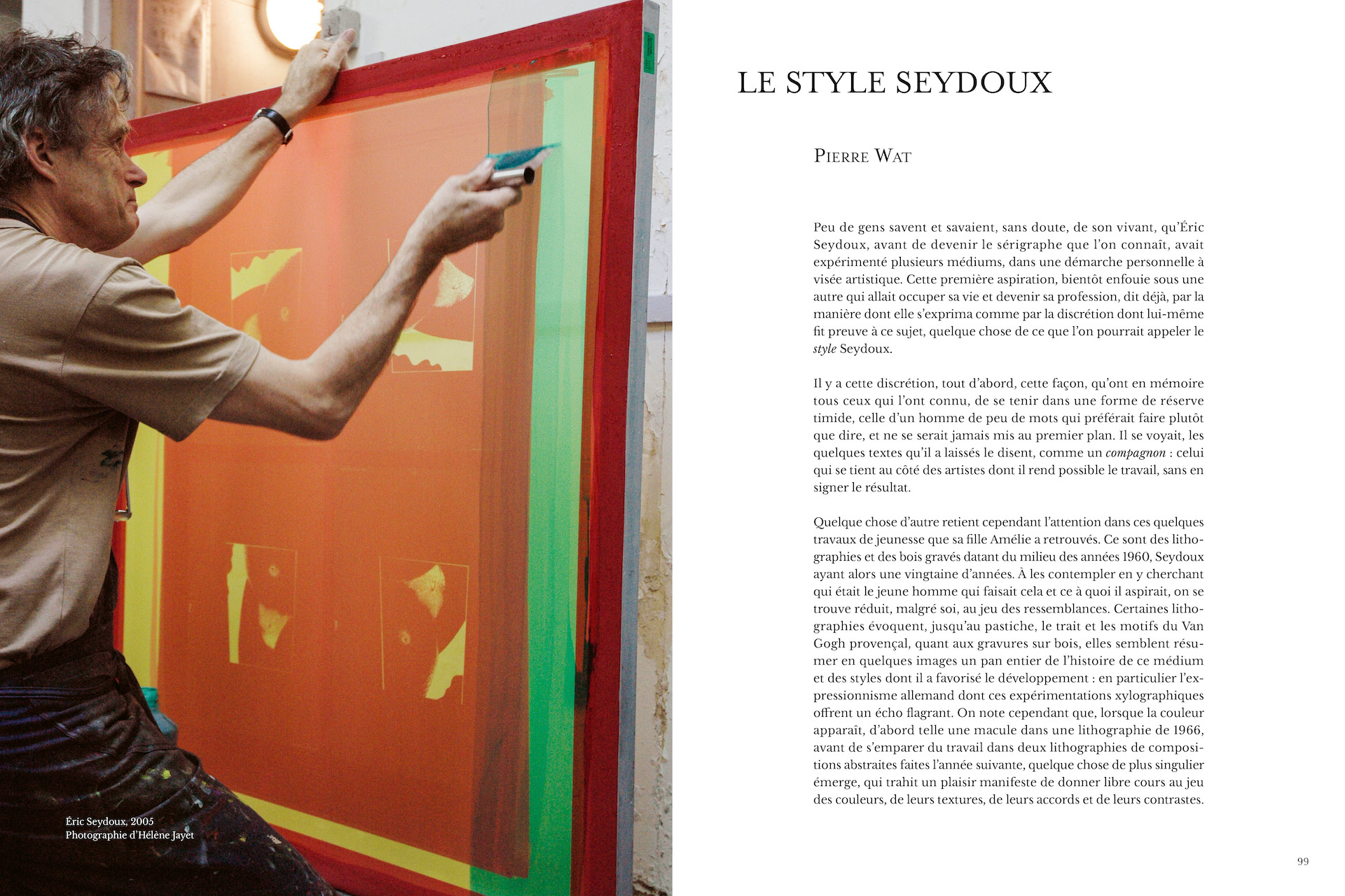 Éric Seydoux (1946-2013), imprimeur et éditeur en sérigraphie, a marqué l’édition d’art par son exigence technique et son engagement auprès des artistes. Formé aux États-Unis puis à Paris, il cofonde en 1974 L’Atelier, lieu de création où se croisent plusieurs générations d’artistes, de la bande dessinée aux avant-gardes contemporaines. Son savoir-faire lui vaut de collaborer avec Pierre Buraglio, Shirley Jaffe, Claude Viallat et bien d’autres. Promu Maître d’art en 2008, il explore sans cesse les possibilités de la sérigraphie, mêlant innovation et tradition. Plus d’une décennie après sa disparition, cette première monographie d’envergure lui rend hommage à la suite de l’exposition à la BnF en 2023 et de l’exposition au musée Henri Matisse du Cateau-Cambrésis du 8 juin au 2 novembre 2025.