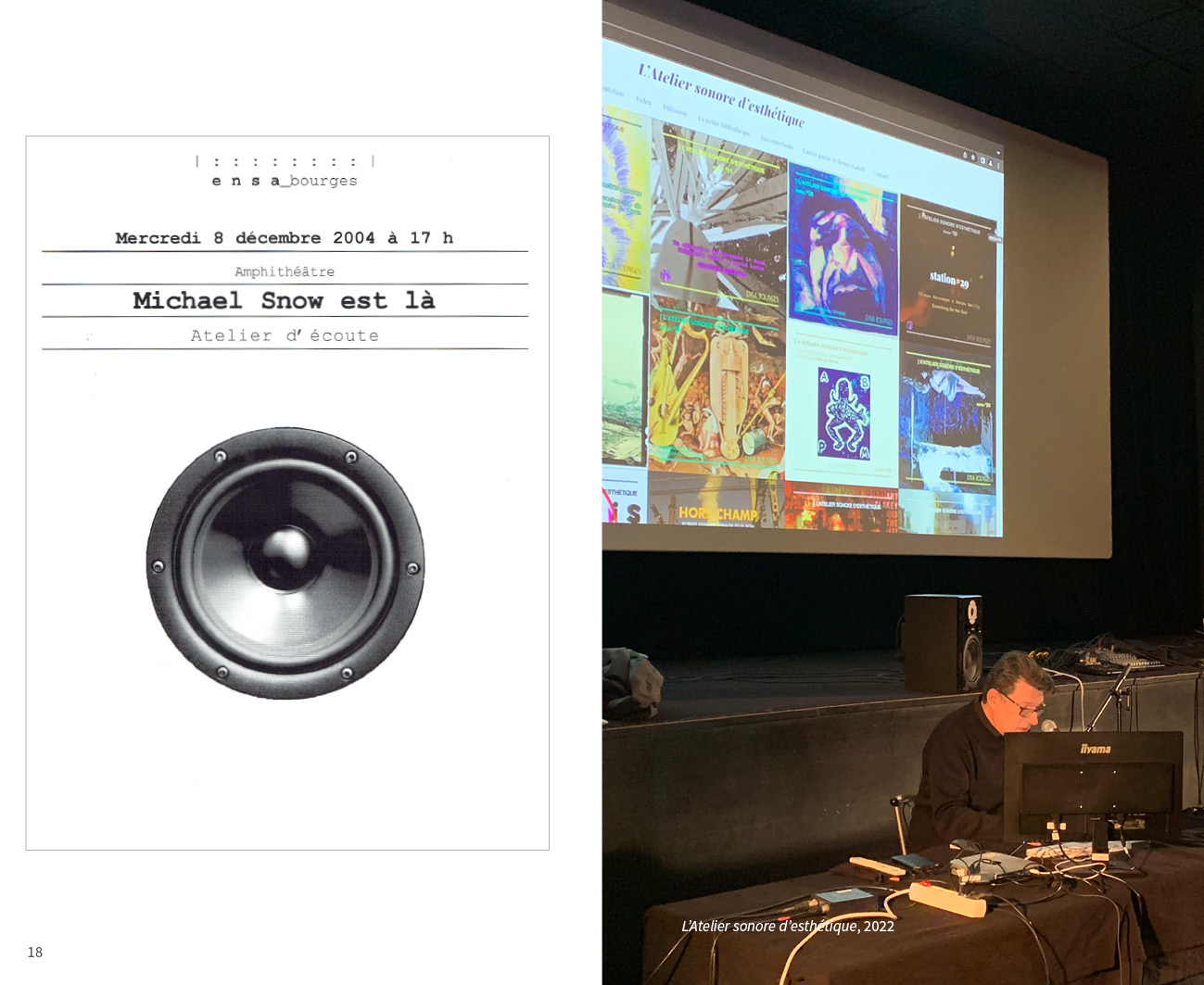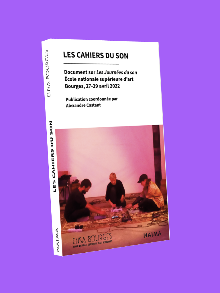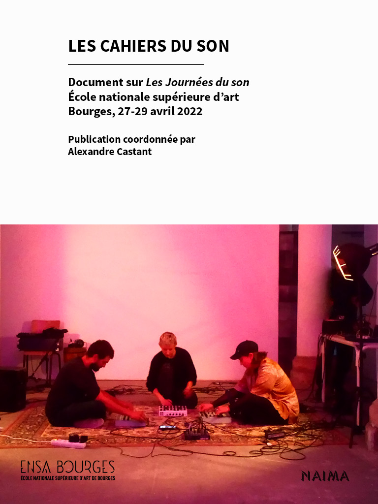 Au regard de la programmation historique d’œuvres d’art sonore, notamment dans le cadre de sa galerie La Box, l’École nationale supérieure d’art de Bourges a, depuis plus de trente ans, régulièrement considéré la musique, le son, le bruit, le silence ou la voix comme des objets de recherche artistique, visuelle ou plasticienne. Aussi, forte de ses multiples ateliers et collaborations entre professeur.e.s, et de ses nombreux projets d’étudiant.e.s, l’École nationale supérieure d’art de Bourges a proposé, du 27 au 29 avril 2022, Les Journées du son, un événement qui a présenté l’état des lieux des différentes pratiques sonores conduites, notamment, dans le cadre des ateliers pédagogiques de l’École, et des projets artistiques ou théoriques de ses professeur.e.s. Les Cahiers du son en dressent l’inventaire tout en invitant à découvrir la stimulante inventivité qui, aujourd’hui, anime la création sonore dans le champ des arts plastiques, et au sein d’une École d’art.