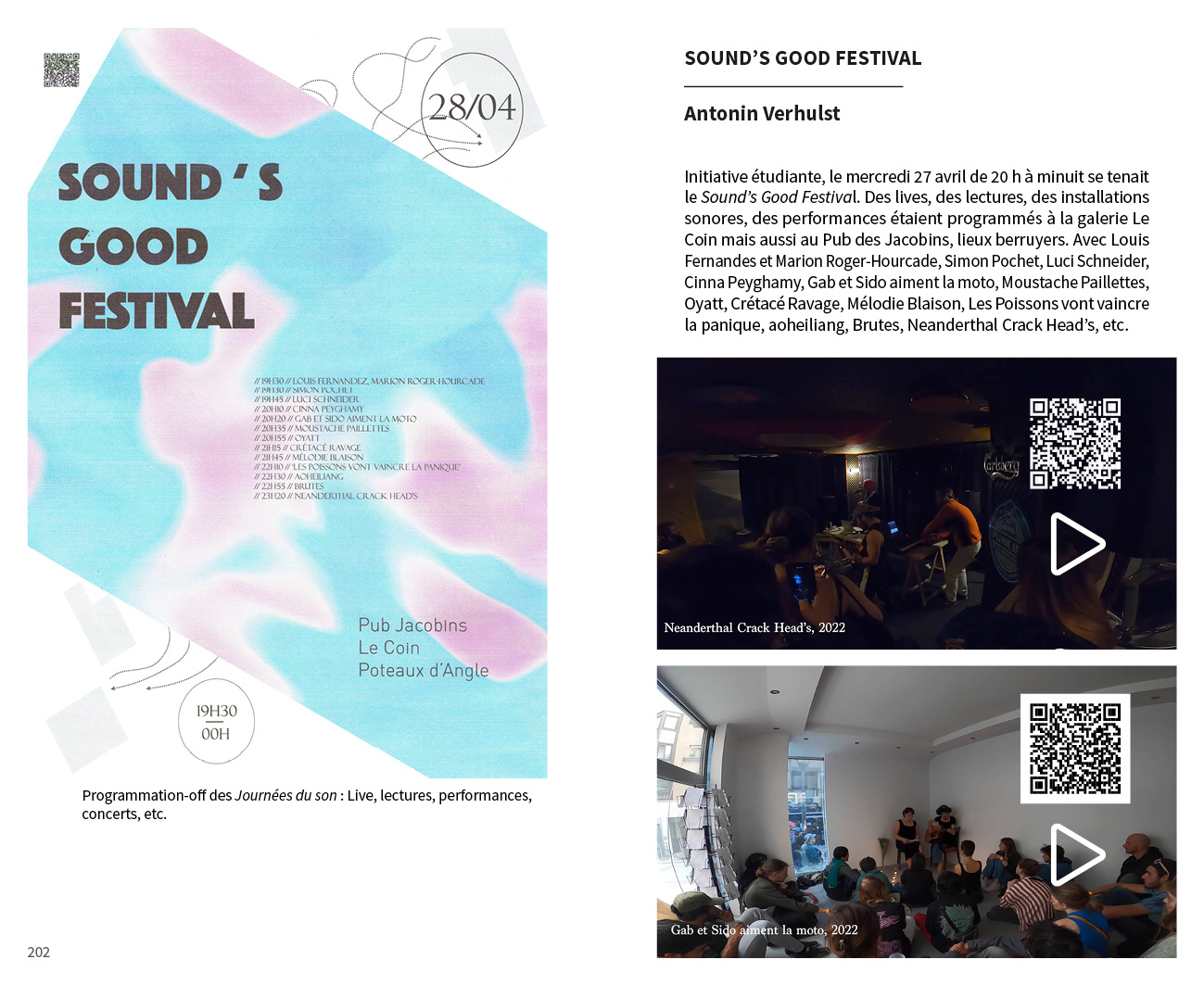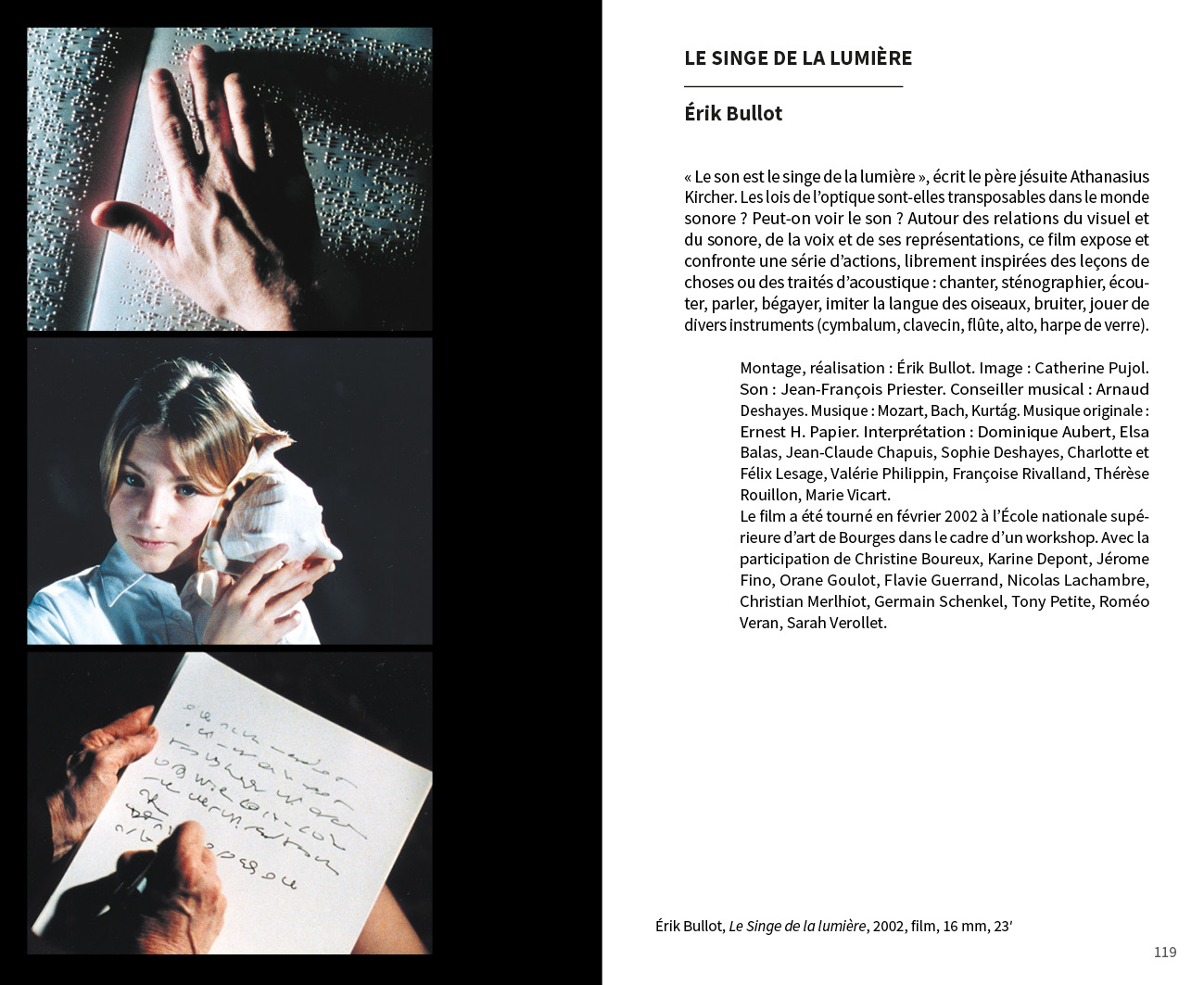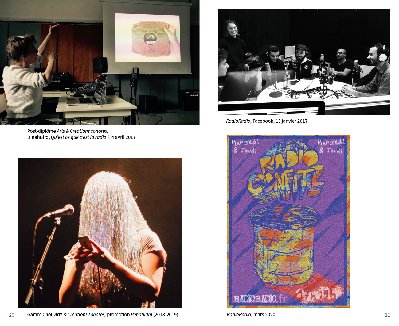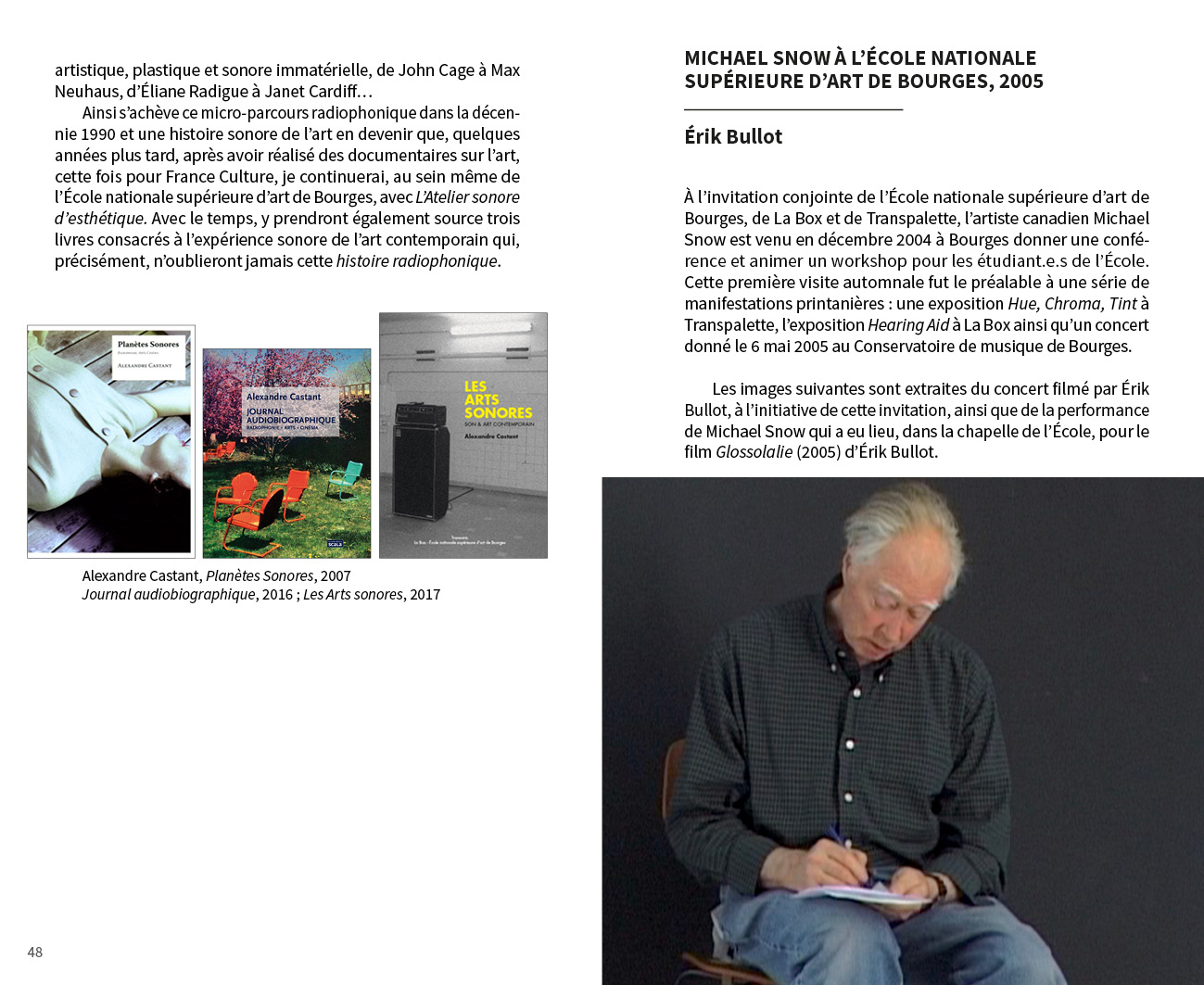 Avec des propositions monographiques de : Benjamin L. Aman, Carla Beaumatin, Neal Beggs, Érik Bullot, Alexandre Castant, Ambre Charpagne, Florence Chevallier, Cécile Colle}{Ralf Nuhn, Magali Desbazeille, Anaïs Dunn et Stéphane Joly, Ferenc Gróf, Stéphanie Jamet, Jérôme Joy, Tatiana Komaroff, Aurélien Krafft, LASSO (Association étudiante de l’École nationale supérieure d’art de Bourges), Ingrid Luche, Jean-Michel Ponty, Myriam Pruvot, Punkte (post-diplôme Arts & créations sonores), Nina Queissner, Sofia Quintero, Talla Thiam, Antonin Verhulst, Li Xinran et Sonia Gassemi, Liu Yaonan, Jonathan Zwaenepoel.