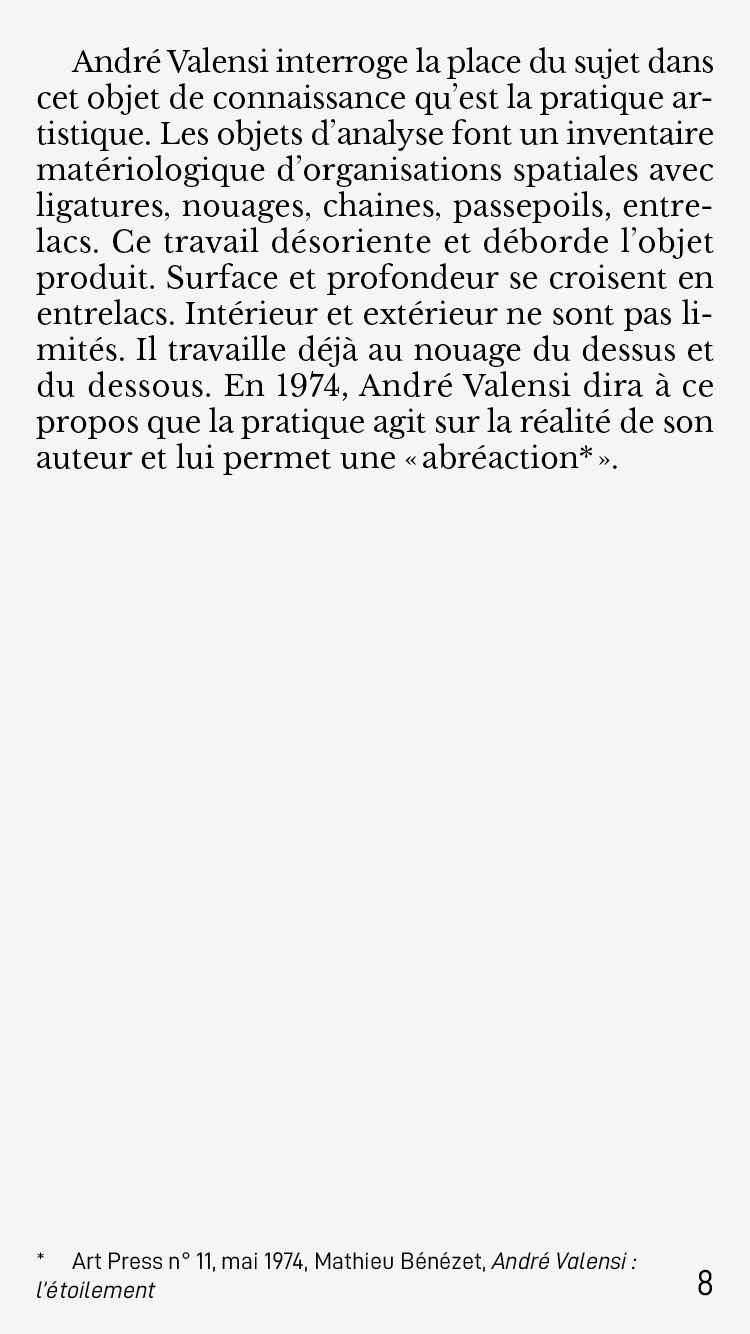 Première documentation consacrée à l’ensemble de l’œuvre d’André Valensi, cette monographie contextualise la pratique et le vocabulaire pictural mis en place en 1969-1971 avec Supports-Surfaces et déployé sur trois décennies jusqu’en 2001.