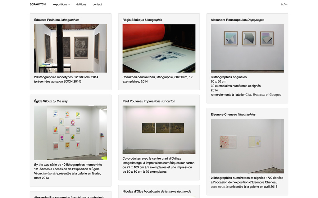 Créées en 2011 par Thomas Marin, Mathias Énard et Julien Bézille, Scrawitch édite des lithographies. L’activité s’est diversifiée en 2012 avec l’ouverture d’une galerie d’art contemporain jusque fin 2014 et depuis avec les éditions Naima.