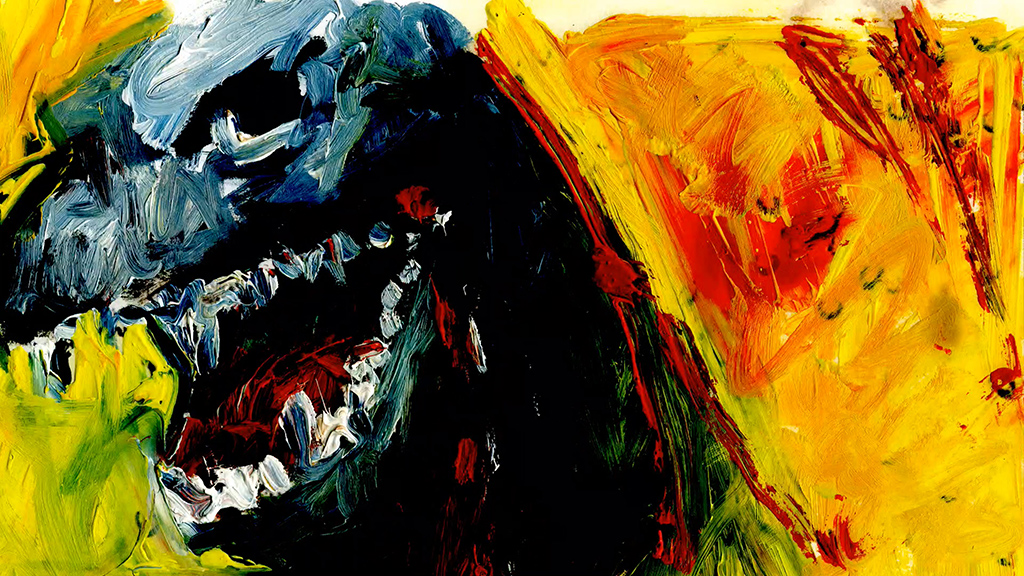 Godzilla Reloaded (2015, vidéo 4K, sonore, 3’33’’ en boucle) est un film en papier réalisé à partir de très brèves séquences soustraites à la longue série des « Godzilla » produite au Japon depuis les années 1950. Les fragments collectés sont décomposés en images fixes, transformant les films en une base de données dans laquelle on peut s’engager librement sans souci d’une ligne narrative cohérente ou d’une position chronologique. Reprises numériquement pour une nouvelle configuration des formes et des mouvements, ces images deviennent des peintures, formant une succession de tableaux peints, qui constituent la matrice d’un film. Le choix de techniques très grasses apporte au travail de nombreuses taches, scories, y compris un halo formé d’huile séchée apparaissant parfois autour des figures, comme un méta-dessin venant en plus. Dans le film, ces traces bougent aussi, rappelant incidemment les salissures ou l’usure des pellicules de cinéma. Le geste qui se développe de manière sensiblement différente entre les images, donne le sentiment que l’image se fait et se défait sans arrêt, dans une animation de la surface même, à la limite du flicker. Transformé en une créature de couleur à l’aspect instable, Godzilla devient un personnage dont la menace tourne à vide ; ses tics resurgissent, mais au sein de ce nouvel espace pictural ils se manifestent comme dans une pantomime. L’isolement de la figure, l’effacement du contexte original, révèlent incidemment la part d’humanité de Godzilla, qui ne se déplace jamais à la manière d’un animal ; à travers la gestuelle du monstre, agitant les bras et marchant comme un homme, c’est la présence de l’acteur à l’intérieur d’un costume de caoutchouc en forme de bête antédiluvienne qui se rappelle à nous. La créature déplacée, repeinte, transformée, reste habitée par le personnage fantôme placé à l’intérieur qui lui donnait vie dans les premiers films de la série.
