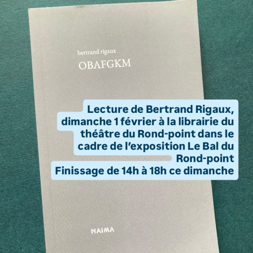 Dimanche 1er février à 16h, Bertrand Rigaux lira des extraits de OBAFGKM paru aux éditions Naima.