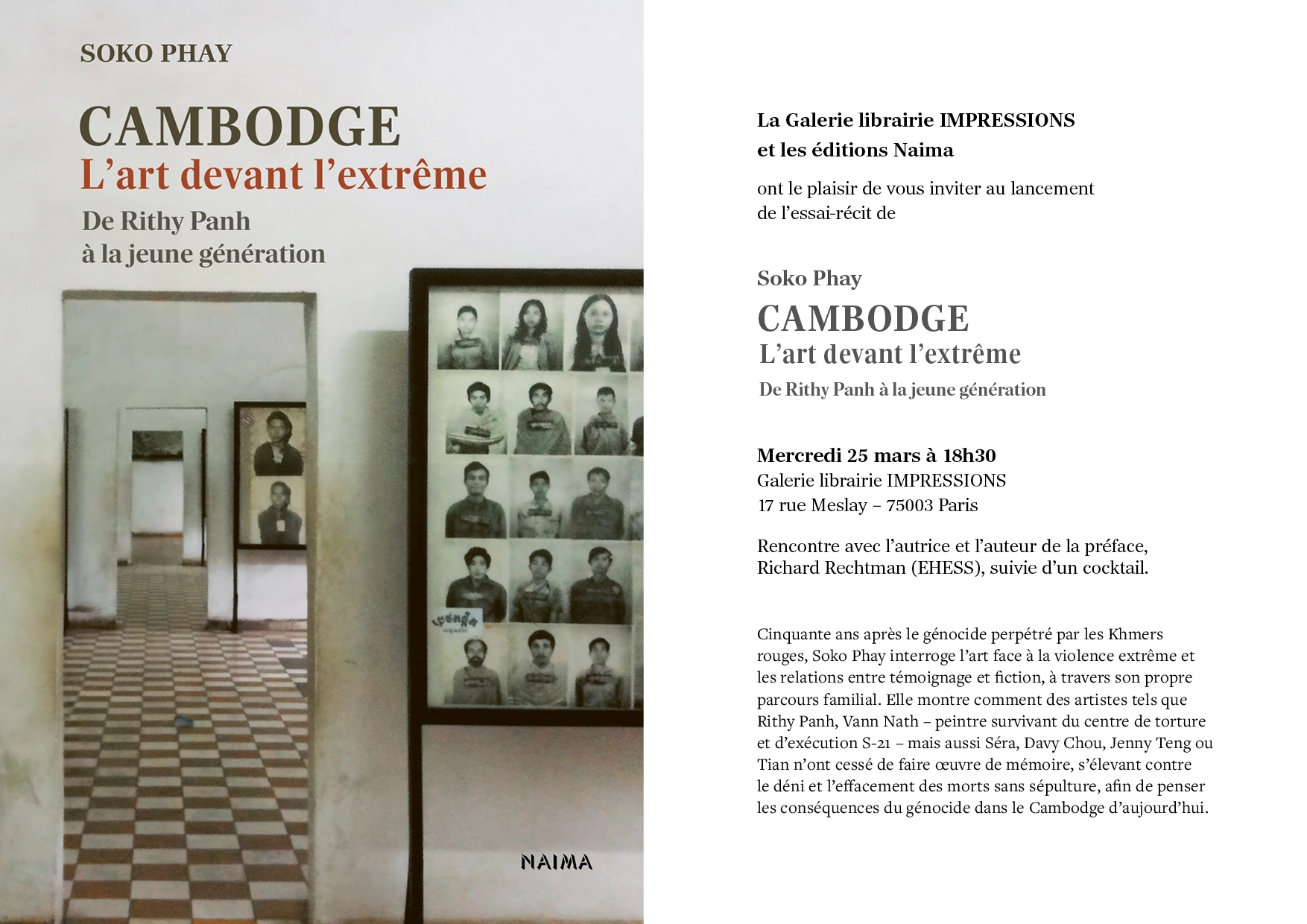 Les éditions Naima ont le plaisir de vous convier au lancement du nouvel essai-récit de Soko Phay le mercredi 25 mars à 18h30 à la Galerie librairie IMPRESSIONS (Paris). Au programme : rencontre avec l’autrice et Richard Rechtman, suivie d’un cocktail.